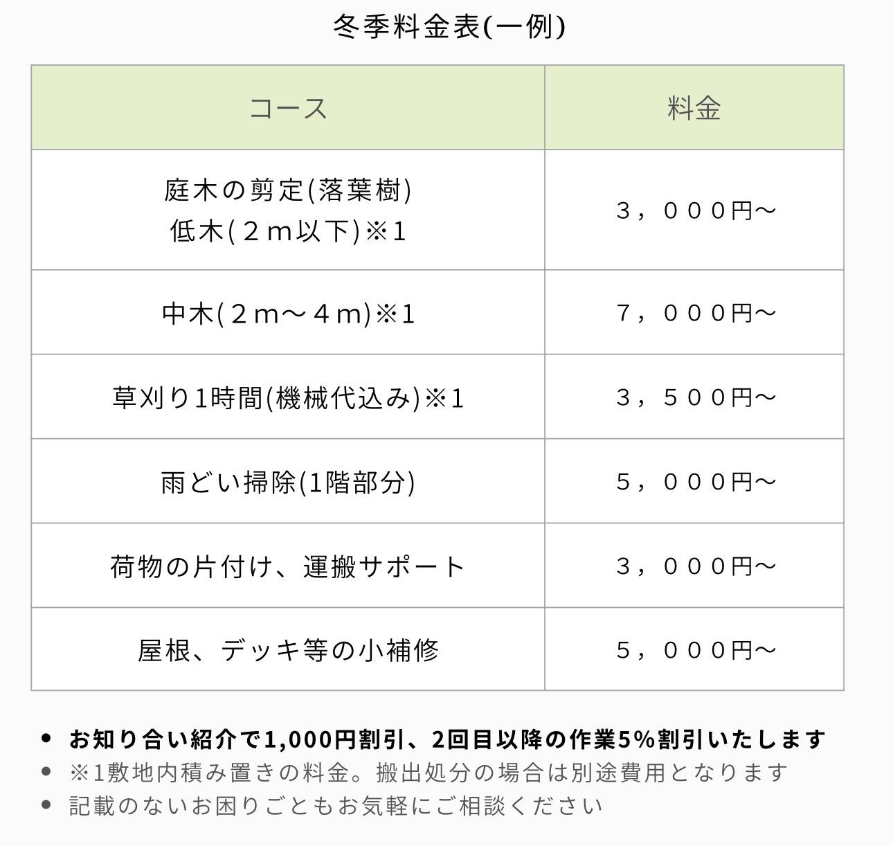※料金は敷地面積(100㎡目安)や傾斜、石の多さにより変動します。