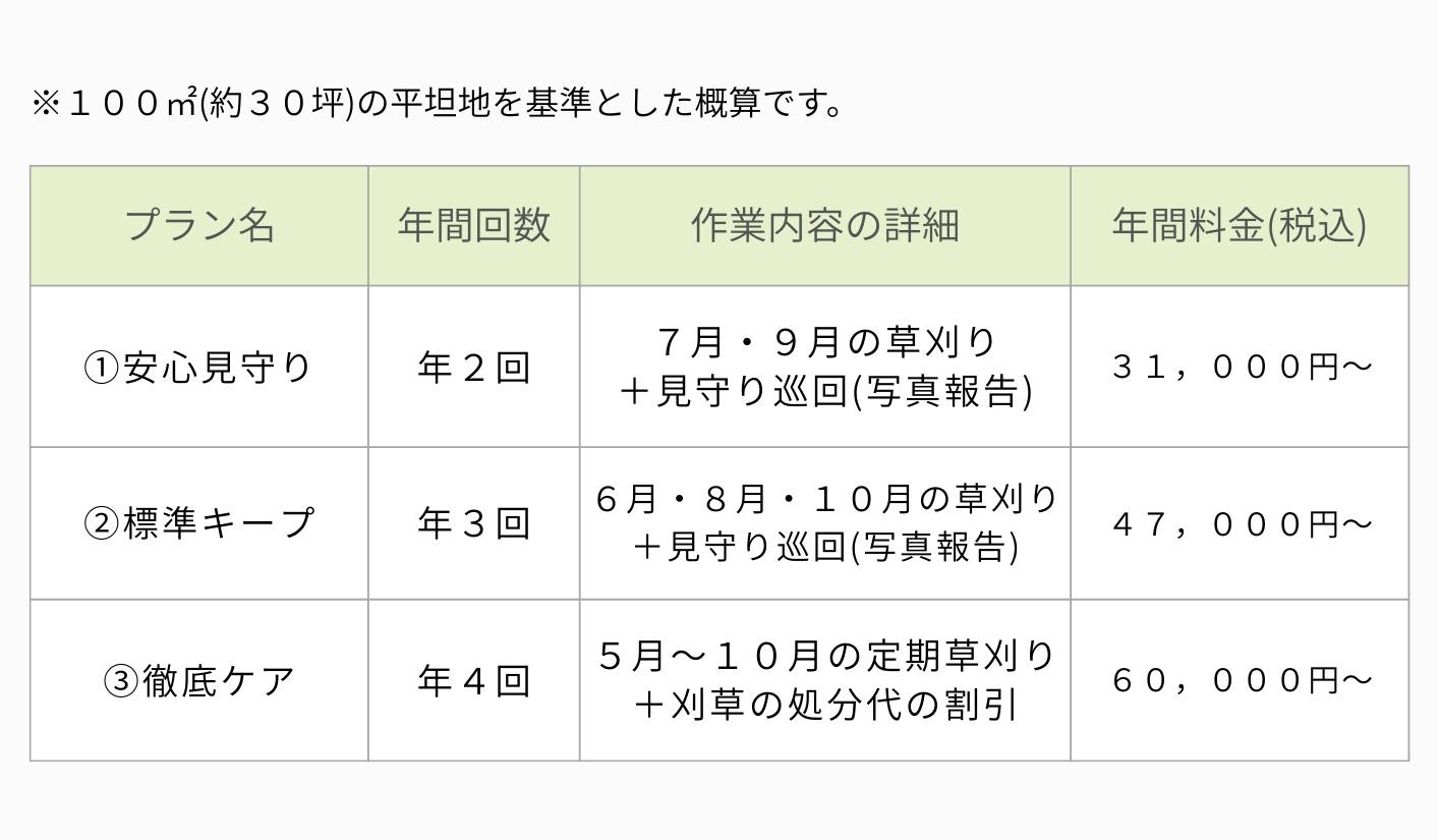 • 特典: 草刈り月以外の「簡易見守り巡回(写真報告)」付き。